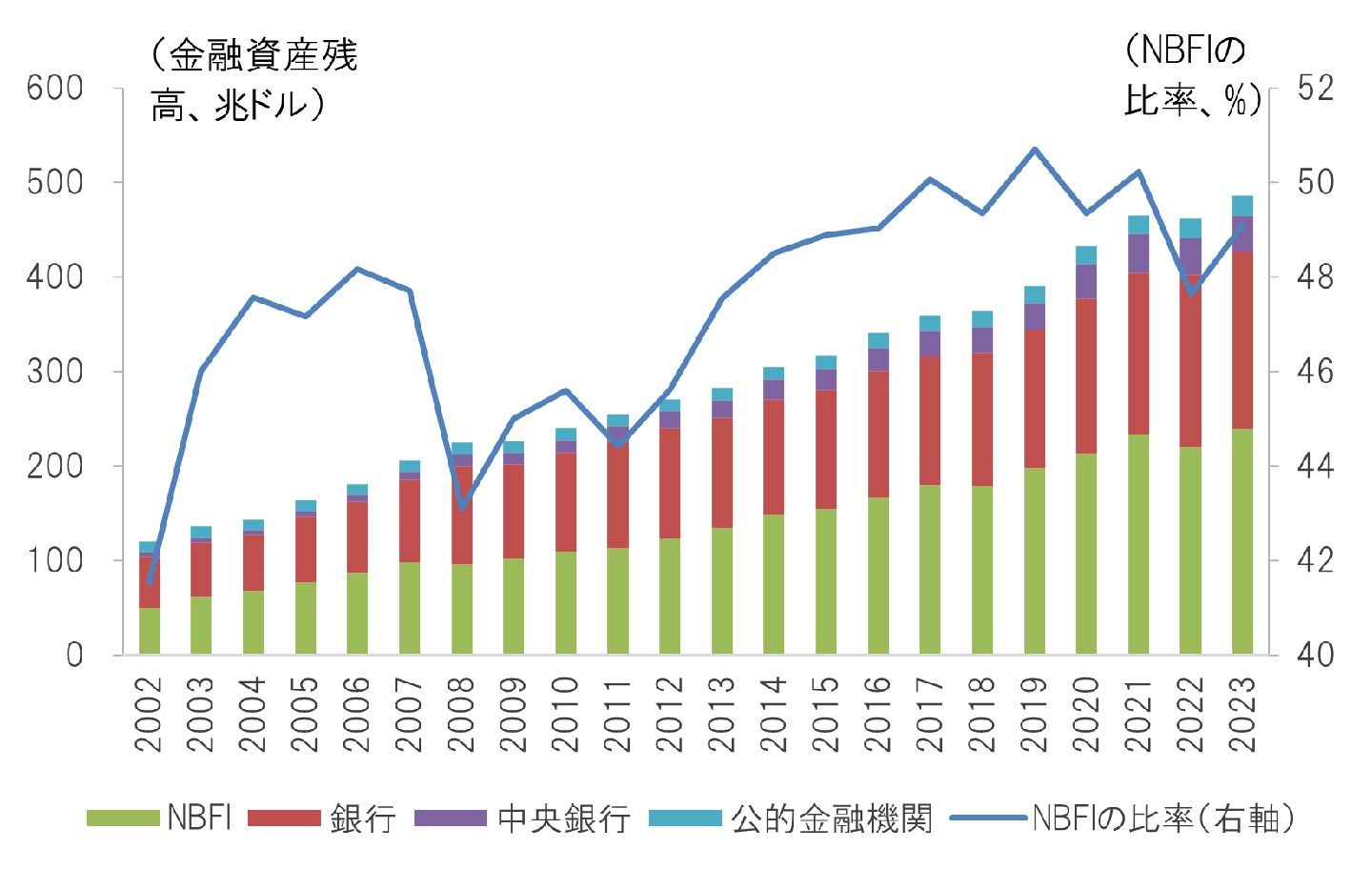 一方、銀行に比べて財務状況やリスク管理状況の開示が限定的なNBFIが金融システムの中核を担うようになれば、金融システムの透明性が低下しかねないという考え方もある。さらに、NBFI自身が、銀行からの借入に依存しているケースも少なくなく、NBFIの問題が銀行を通じて経済全体に波及する可能性も十分ありうる。